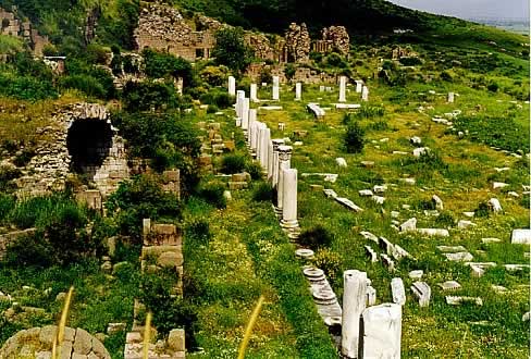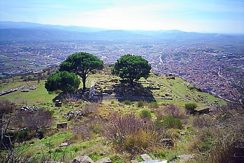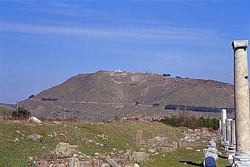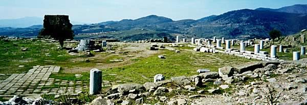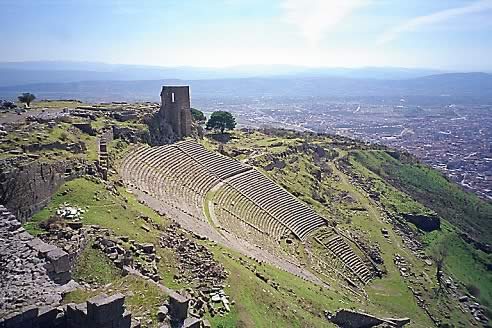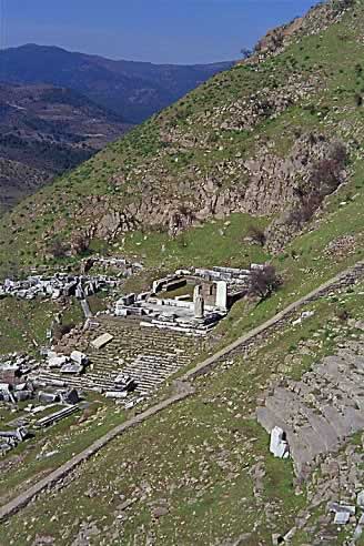 Para visualizar outras cidades clik abaixo: Éfeso Esmirna Pérgamo Tiatira Sardes Filadélfia Laodicéia PergamoTeatro![]() Pérgamo foi a maior cidade no oeste da Ásia Menor nos tempos do Novo Testamento. Está situada em um espaçoso vale, a 26 quilômetros do mar Egeu, naquilo que é hoje a Turquia. Séculos antes de Cristo, Pérgamo foi uma capital independente do império. Seus templos impressionantes, biblioteca e recursos médicos fizeram de Pérgamo um renomado centro cultural e político. No tempo em que o Apocalipse estava sendo escrito, Pérgamo tornou-se parte do império Romano, mas por causa da localização e importância, os Romanos usaram-na como centro administrativo da província da Ásia. O teatro de Pérgamo foi entalhado numa encosta escarpada da acrópole, acima do vale. Tinha 80 fileiras de assentos e podia acomodar 10.000 pessoas para apresentações e concursos musicais. Acropole![]() A parte principal em Pérgamo é sua acrópole, o monte no qual a maioria da cidade estava construída. A acrópole se eleva acima da planície logo abaixo, proporcionando uma visão espetacular da região subjacente. Séculos antes de Cristo, reis de Pérgamo construíram palácios e templos no topo da acrópole. Acrópole![]() Reis de Pérgamo construíram seus palácios perto do topo da acrópole.A medida em que os Romanos expandiam seu poder no segundo século a.C., os planos de permanecer independente acabaram. O último reio de Pérgamo deu a cidade e seu reinado aos Romanos em 133 a.C. Depois disso os Romanos fizeram de Pérgamo um importante centro administrativo para a província da Ásia. Biblioteca![]() Pérgamo tinha uma das mais famosas bibliotecas do mundo. Segunda em tamanho apenas para a biblioteca de Alexandria. É dito que tinha 200.000 volumes. O tamanho e qualidade da coleção foram melhorados pelo uso do pergaminho, um material de couro utilizado para a escrita que foi desenvolvido em Pérgamo. Ao lado da biblioteca estava o santuário de Atena, a divindade associada à sabedoria. O santuário de Atena incluía o prédio do templo e uma grande área sagrada que era contornada por colunas. Templo de Dionísio![]() Um templo para Dionísio ficava de um lado do monte, em frente ao teatro. O lugar do santuário mostra uma grande associação de Dionísio com a encenação e celebrações públicas. Altar de Zeus![]() O altar de Zeus era uma das mais impressivas estruturas da acrópole de Pérgamo. As escadas do altar, colunas e lados esculpidos tinham a 12 metros de altura. Hoje, somente os degraus ao redor da base do altar podem ser vistos. Os lados do altar eram ornamentados com painéis de mármore que representavam uma batalha mítica entre os deuses gregos e gigantes rebeldes, que eram filhos da mãe terra. O altar foi construído muitos anos antes de Cristo para comemorar vitórias do exército de Pérgamo. Ginásio![]() Uma rua pavimentada cortava a parte de baixo da acrópole e passava através de um agora ou lugar do mercado. Adiante nesta rua estava um complexo ginásio que tinha um largo pátio que poderia ser usado para exercícios incluindo salto, luta e levantamento de peso. O ginásio era contornado por calçadas e tinha prédios de banho nas proximidades. Rua Sagrada![]() Um santuário para o deus da cura Esculápio era localizado no subúrbio de Pérgamo, próximo a uma rua sagrada. Esse caminho sagrado vai da cidade ao santuário. Santuário![]() O santuário do Esculápio era um renomado centro médico. No início do quarto século a.C., pessoas vinham para Pérgamo procurando cura. As colunas da foto são parte da antiga estrutura do santuário. O santuário era mantido por um grupo de sacerdotes, junto com atendentes do templo, músicos e outras pessoas. No final do primeiro século, relatos de curas milagrosos aumentaram o número de pessoas que vinham a Pérgamo procurar cura. Décadas antes de o Apocalipse ser escrito, o santuário foi dramaticamente expandido para incluir colunas, um pequeno teatro e mais salas de tratamentos de pacientes. No segundo século, o médico Galen começou sua prática cuidando de gladiadores em Pérgamo. Mais tarde ele se mudou para Roma e tornou-se o médico da corte do imperador Marco Aurélio. |