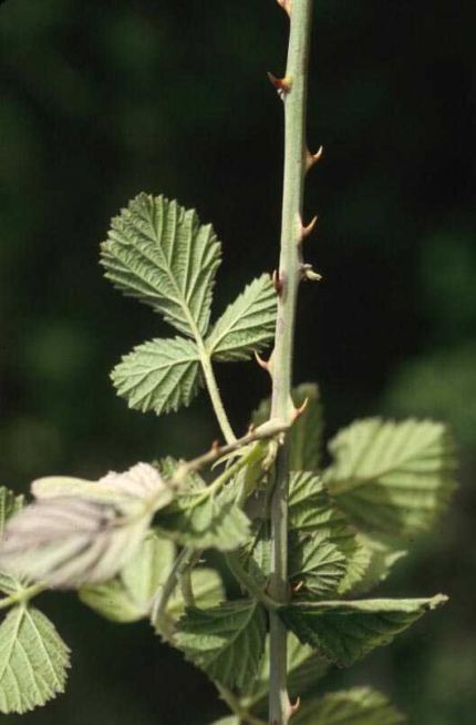 são armadas com os grandes espinhos afiados. A fruta é saborosa, mas raramente é coletada porque a amora