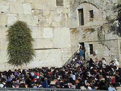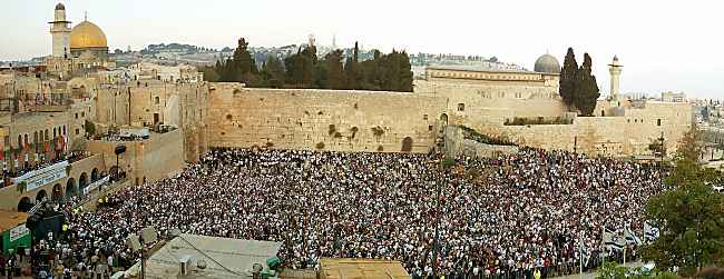 dos rabinos presentes no largo pátio e em frente ao Muro. |