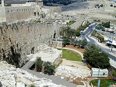Porta dourada Este portão fechado no lado oriental foi construído aproximadamente em 640 D.C. pelos últimos bizantinos ou pelos primeiros conquistadores árabes. A tradição árabe compara este portão com a pessoa mencionada na profecia de Ezequiel (c. 44). Leen Ritmeyer acredita que um portão bem mais antigo é preservado debaixo do portão atual. | ![]() |