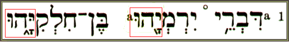 Agora confira na figura abaixo o Nome YAOHU como sufixo, tanto do nome do profeta Yarmiyaohu, como no nome do pai do profeta, Khilqiyaohu: