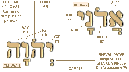 Para os que gostam de ir mais a fundo no entendimento, certamente gostarão de saber por que o massorético SHEVAU-PATAR foi transposto como SHEVAU SIMPLES. É ortograficamente errado em hebraico usar SHEVAU COMPOSTO sob consoante que não seja gutural. Como o ÁLEF é gutural e o YOD não é, então o SHEVAU-PATAR foi transposto como SHEVAU SIMPLES, mudando o som de "A" para "E". Este erro causou não só o aparecimento de nomes errados como "yehovah" e "yehoshua", mas também diversos outros derivados do Nome do Pai, uma vez que as gerações seguintes simplesmente passaram a ler o que estava escrito. Exemplos: yehudah, yehudi, yehushaleim, etc. Se "jeová" fosse o verdadeiro Nome, então o Messias, que veio em Nome de Seu Pai, como dizem as Sagradas Escrituras, teria de ser chamado "JEHOVASHUA" ou "JEHOSHUA". Porém não há letra "J" na língua hebraica! Este não é o Nome original do Messias! Além disso, se fosse "Jehovah" então os nomes dos profetas nas Sagradas Escrituras deveriam ter sido traduzidos como se segue, pelos seus tradutores, supondo que seus métodos fossem confiáveis. YaoshuaYAOHU (Isaías) teria sido traduzido como Isajes ZocharYAOHU (Zacarias) teria sido traduzido como Zacarjes ZafnaYAOHU (Sofonias) teria sido traduzido como Sofonjes YAOHUrránam (João) teria sido traduzido como Jeão Não somente eles são cacófonos (desagradáveis ao ouvido) para o povo Yaohudim escutar, como também estas são palavras impossíveis na língua hebraica, lembrando de novo que não há letra "J" no hebraico, seja moderno ou arcaico. A palavra "jehová foi concatenada ou inventada transpondo as vogais da palavra "adonai" para dentro do tetragrama YHWH. Nas antigas comunidades de culto fenício-babilônicas, o ídolo "Adonis" era o mais popular entre as massas pagãs e foi do nome deste ídolo que a palavra "adonai" se originou. As vogais da palavra "adonai" foram transpostas para dentro do tetragama (YHWH) e a palavra resultante ficou sendo "yehovah", e daí passou a "jehová". A própria palavra "adonai" não consta das Sagradas Escrituras originais hebraicas (Tanakh), ela foi uma adulteração, uma adição. O significado real da palavra "Yehovah" é destruição, desolação, perdição. Uma simples pesquisa nos significados e etmologias destas palavras irão claramente revelar isso. O Antigo Testamento foi escrito em hebraico. Nesta língua, o Nome do Altíssimo é expresso com as quatro consoantes YHWH (yod-rey-vav-rey). Na língua hebraica as vogais a, e, i, o, u, originalmente não se escreviam. Por temor reverencial para com o Altíssimo sublime e inefável, os Yaohudim da época do Messias nem sequer punham nos lábios o nome sagrado de YAOHU UL, mas diziam "Ha-Shem". Os glosadores conhecidos por Massoretas, entre cerca de 750 e 1000 da nossa era atual, se deram ao trabalho de fixar o texto hebraico original tanto no conteúdo quanto na pronúncia. Entre outras coisas, eles intercalaram sinais de vocalização entre as consoantes hebraicas. Assim, no tetragrama YHWH colocaram os sinais vocálicos de "Adonai" ou de "Elohim". De acordo com as regras da sua vocalização, sob o Y (YOD), por não ser palatal, escreveram o sinal correspondente à vogal "e", em vez de "a", de sorte que se lia "Yehovah" ou "Jehovih", e foi assim pronunciado, nos séculos seguintes, por leitores que desconheciam como esta forma surgira no texto massorético.